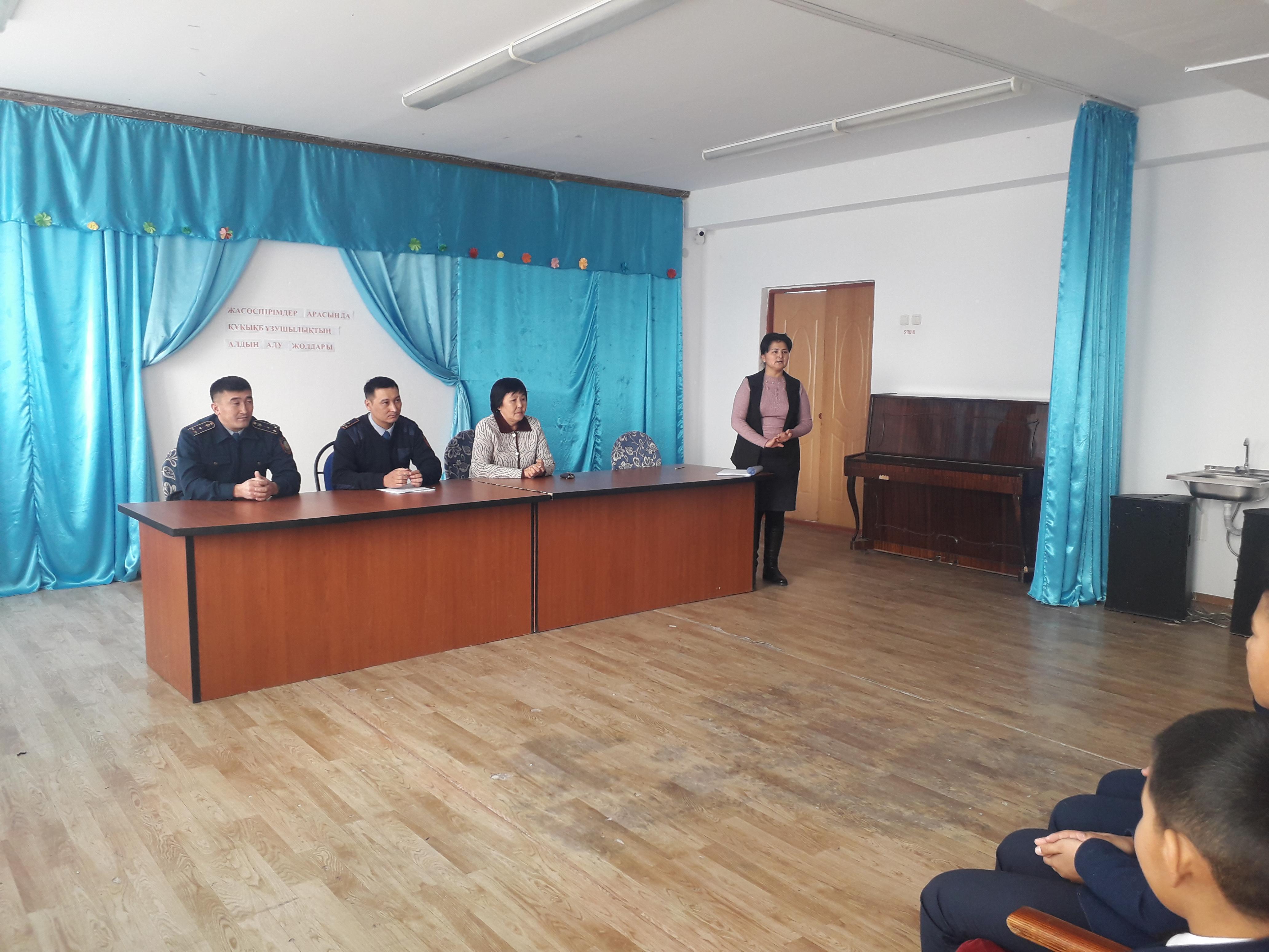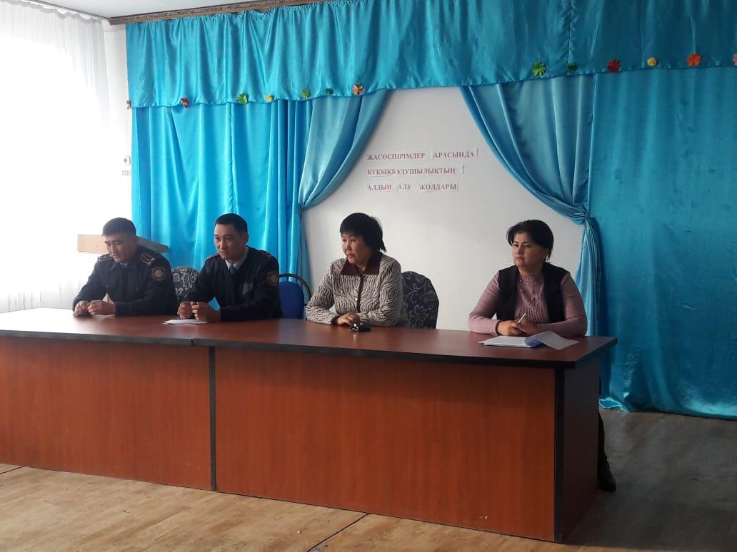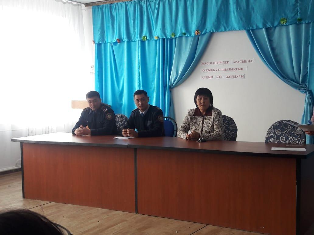 2019 жылдың 12 желтоқсаны күні оқушылар арасында құқықбұзушылықты болдырмау мақсатында" Жасөспірімдер арасында құқықбұзушылықтың алдын алу" тақырыбында полиция аға лейтенанты Д.М.Бакуашевпен кездесу өтті