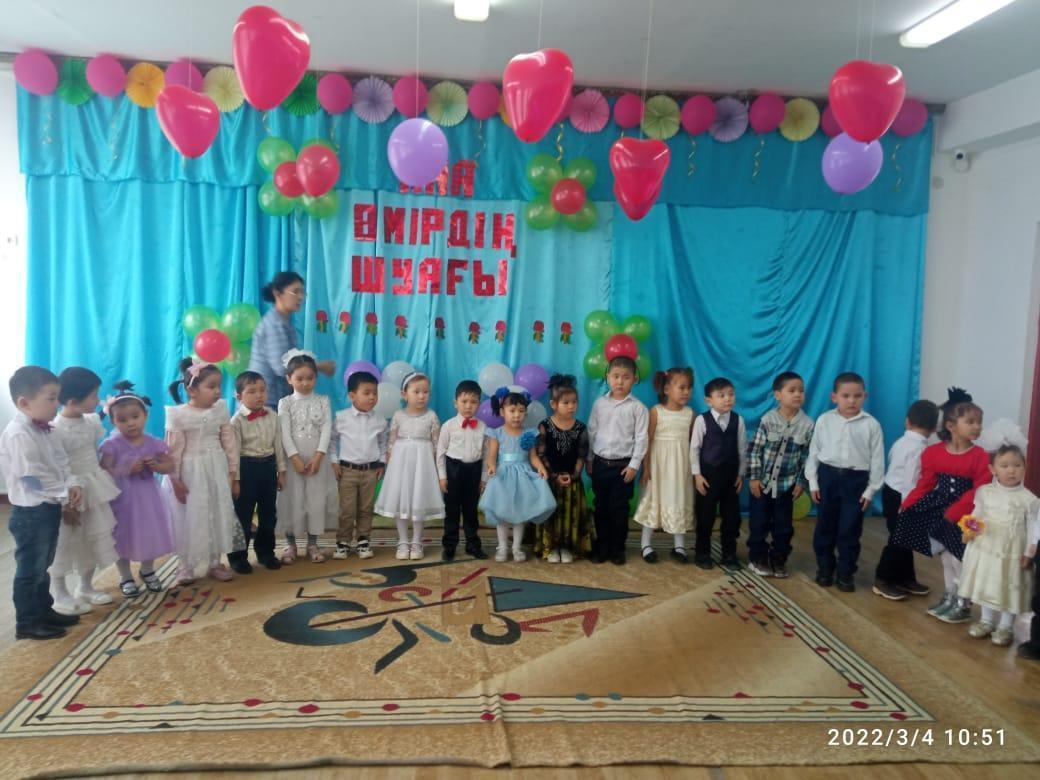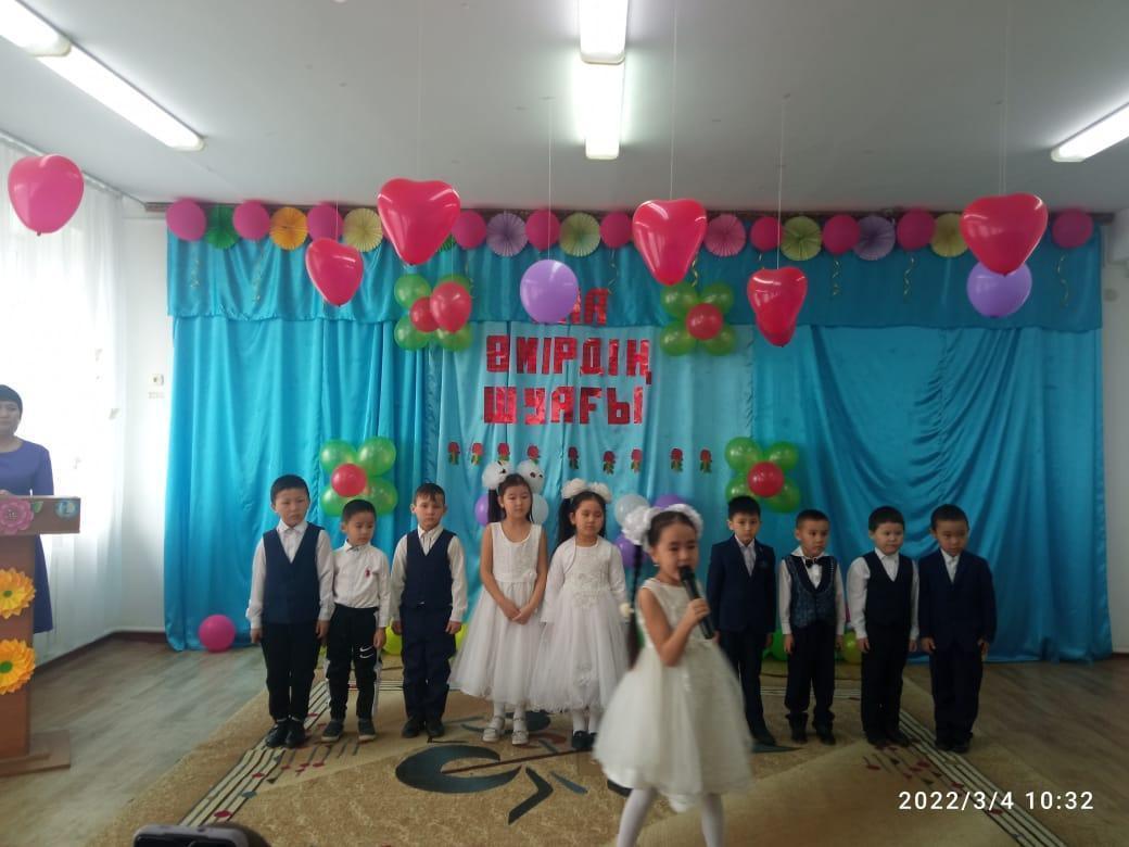 Қарашілік орта мектебінде 2022 жылдың 4-наурызы күні мектепалды даярлық тобы мен шағын орталық тәрбиеленушілері арасында С.Н.Мәнібекова мен Г.Н.Каметжанованың ұйымдастыруымен Аналар мерекесіне орай "Ана өмірдің шуағы" тақырыбында концерттік бағдарлама ұсынды