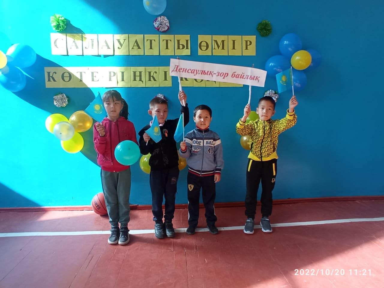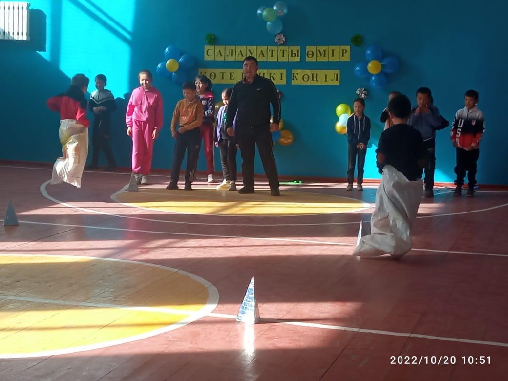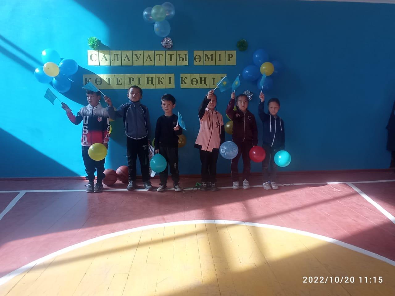 18 октябрь 2022 0 1 2 3 4 5 Салауатты өмір көтеріңкі көңіл Қарашілік орта мектебінде 2022 жылы қазанның 18 күні 2-4 сынып оқушылары арасында "Салауатты өмір-көтеріңкі көңіл" тақырыбында эстафеталық жарыс ұйымдастырылды.Мақсаты: оқушылар арасында салауатты өмірді насихаттау