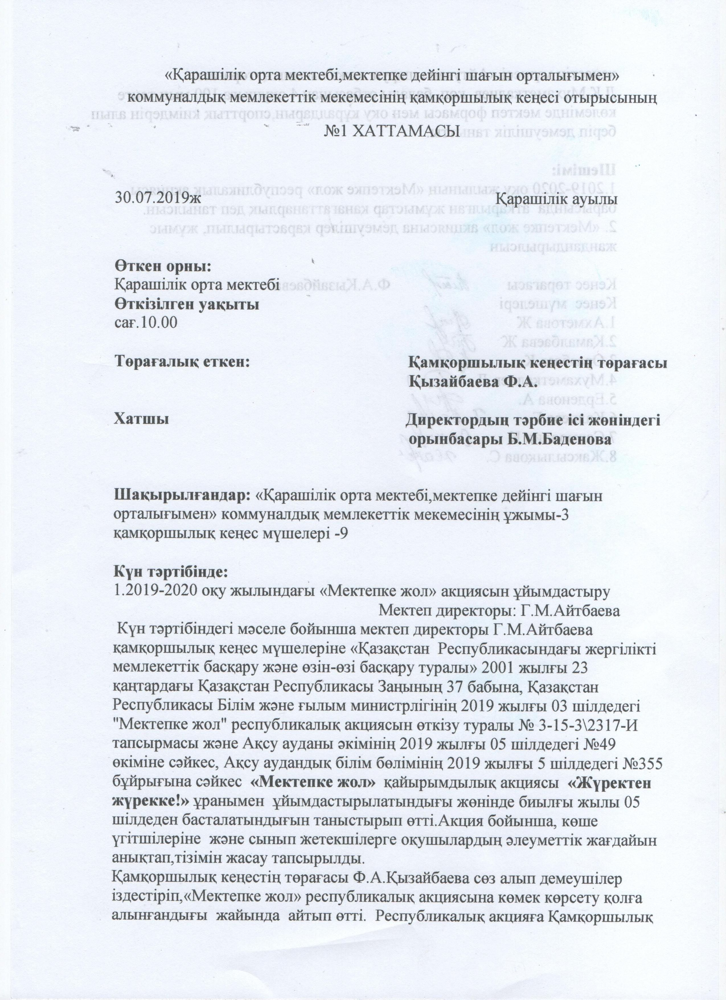 Қамқоршылық кеңестің отырысы » "Қарашілік орта мектебі, мектепке дейінгі шағын орталығымен" коммуналдық мемлекеттік мекемесі