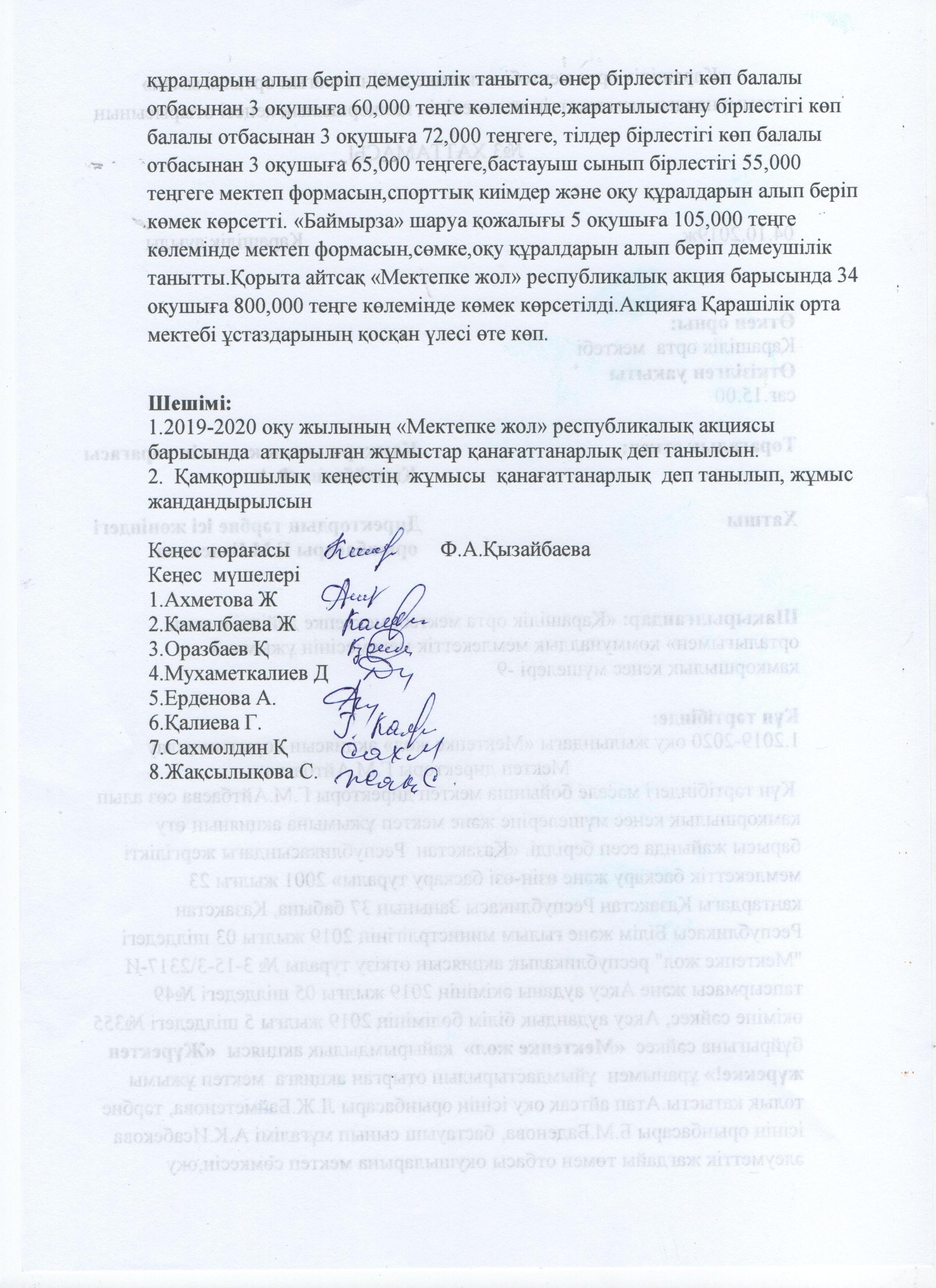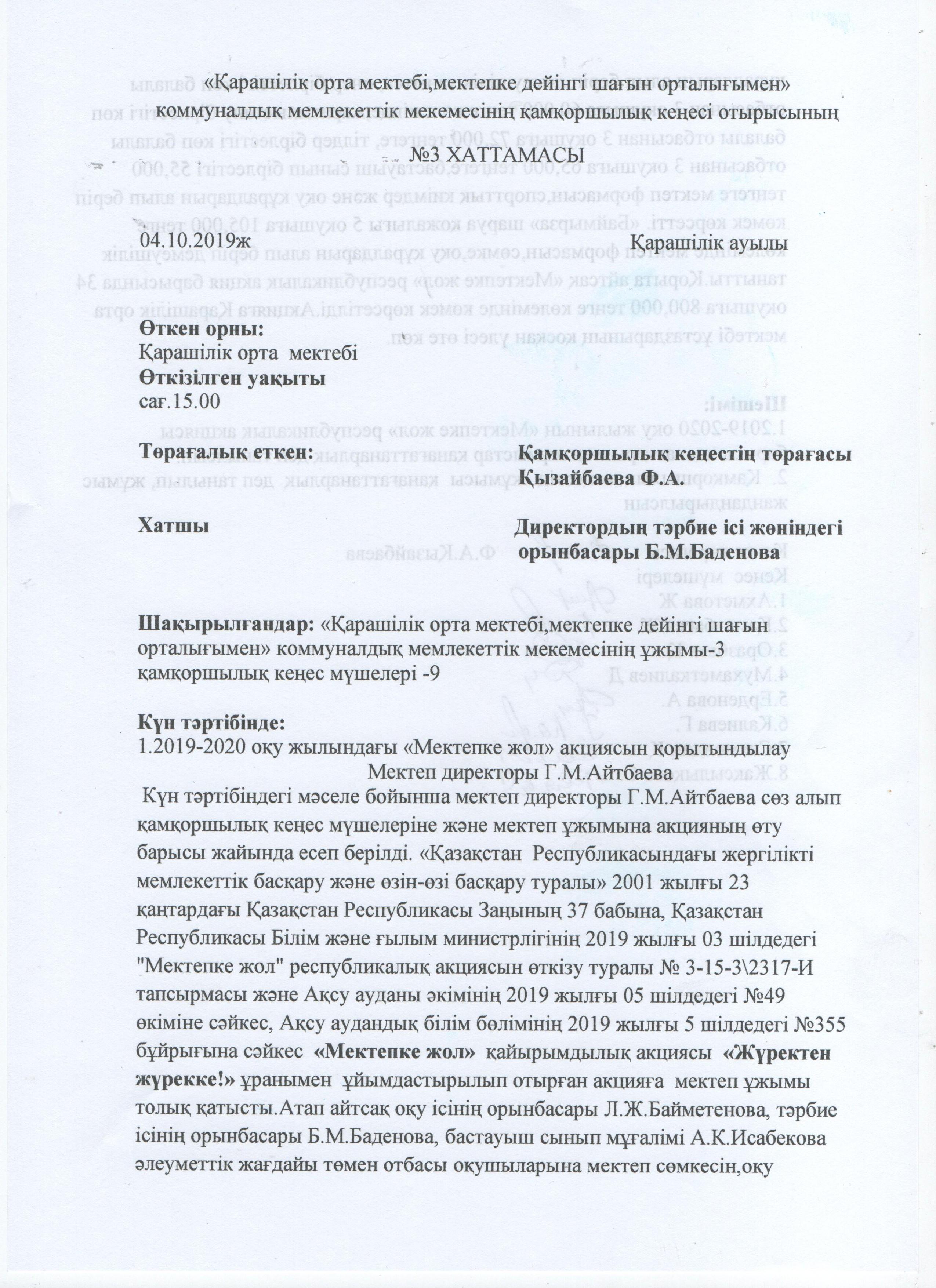Қамқоршылық кеңестің отырысы » "Қарашілік орта мектебі, мектепке дейінгі шағын орталығымен" коммуналдық мемлекеттік мекемесі