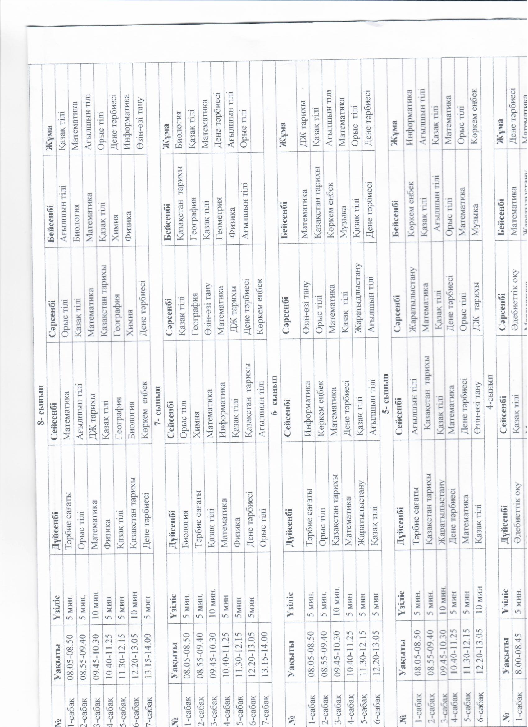 Сабақ кестесі » "Қарашілік орта мектебі, мектепке дейінгі шағын орталығымен" коммуналдық мемлекеттік мекемесі
